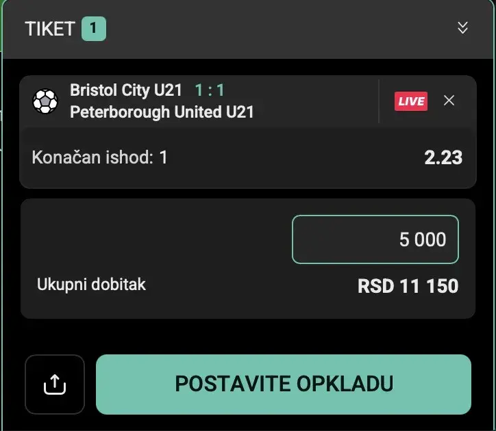- Комбинујте више ливе опклада за већу укупну квоту.